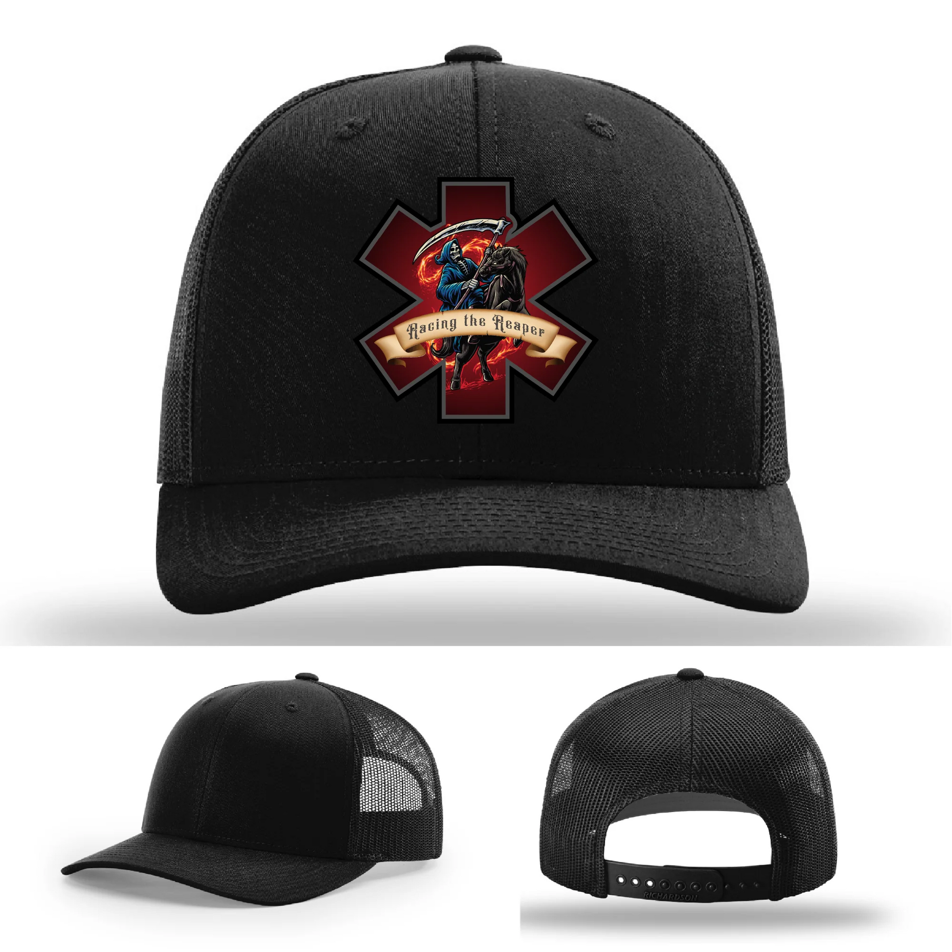 The Reaper Hat is built for wherever the job takes you. On duty, off duty, in the station, at fundraisers, or out with friends, it makes a statement that only EMS crews will fully understand. A structured crown keeps a solid profile, the curved bill cuts glare, and the adjustable closure dials in the fit. Over time the leather patch develops natural patina, giving the design character that grows with every mile.